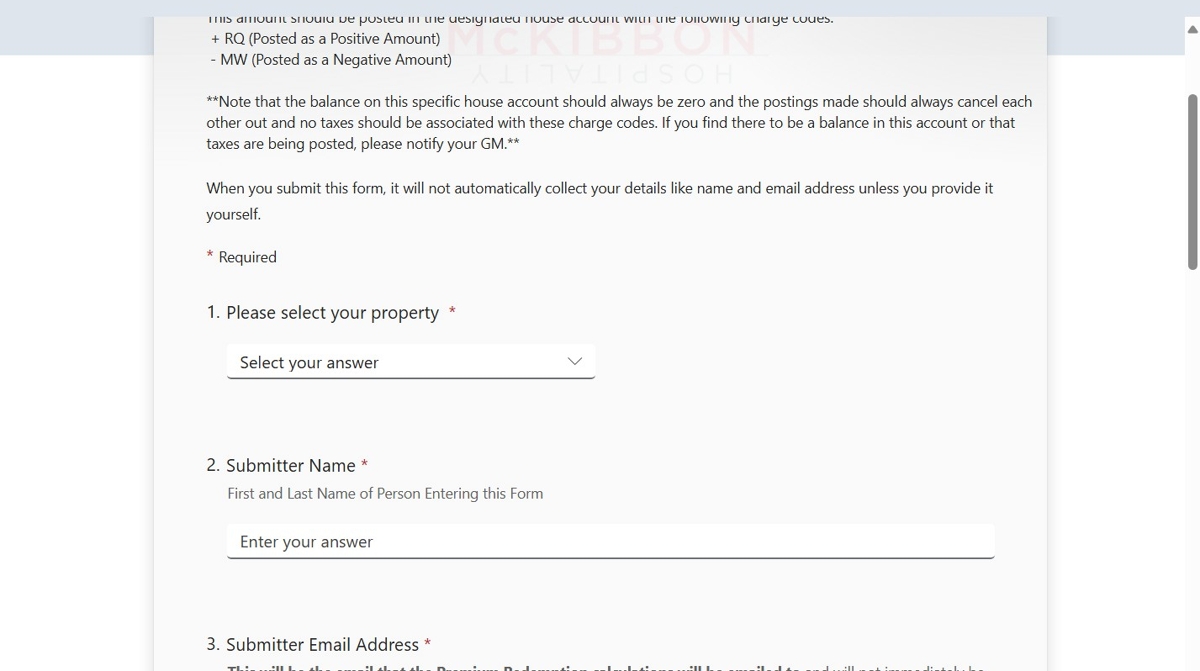 Once the form has been submitted - there is no further action needed within the form. Navigate to your e-mail and await for the submission confirmation from reporting@mckibbon.com which should process in less than one minute.